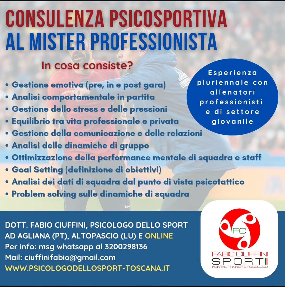 Ma non solo. Un Mister professionista ha la necessità di gestire un gruppo di ragazzi con caratteristiche mentali molto disomogenee, di relazionarsi con una dirigenza, con la stampa, con la tifoseria. Deve mantenere focus settimanale sulla propria performance nonostante abbia molti potenziali stressors e elementi distraenti che richiedono grande autoconsapevolezza sul piano emotivo.